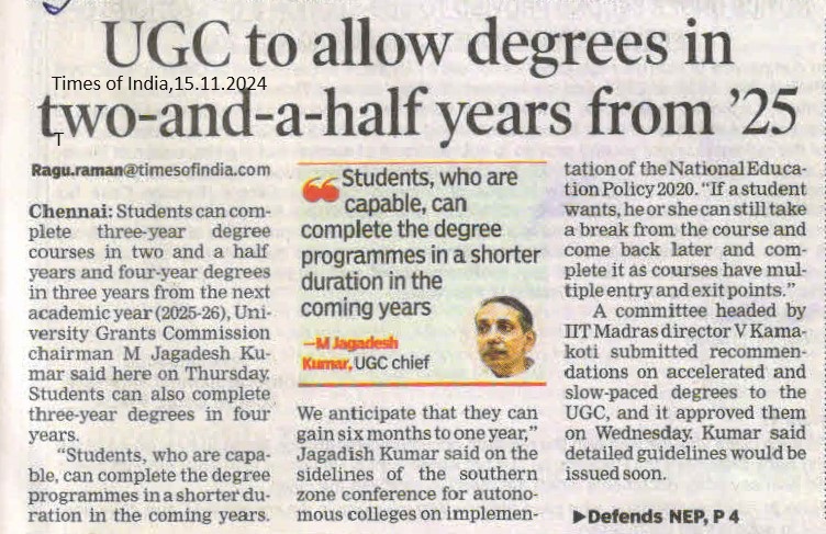 UGC to allow degrees in two and a half years