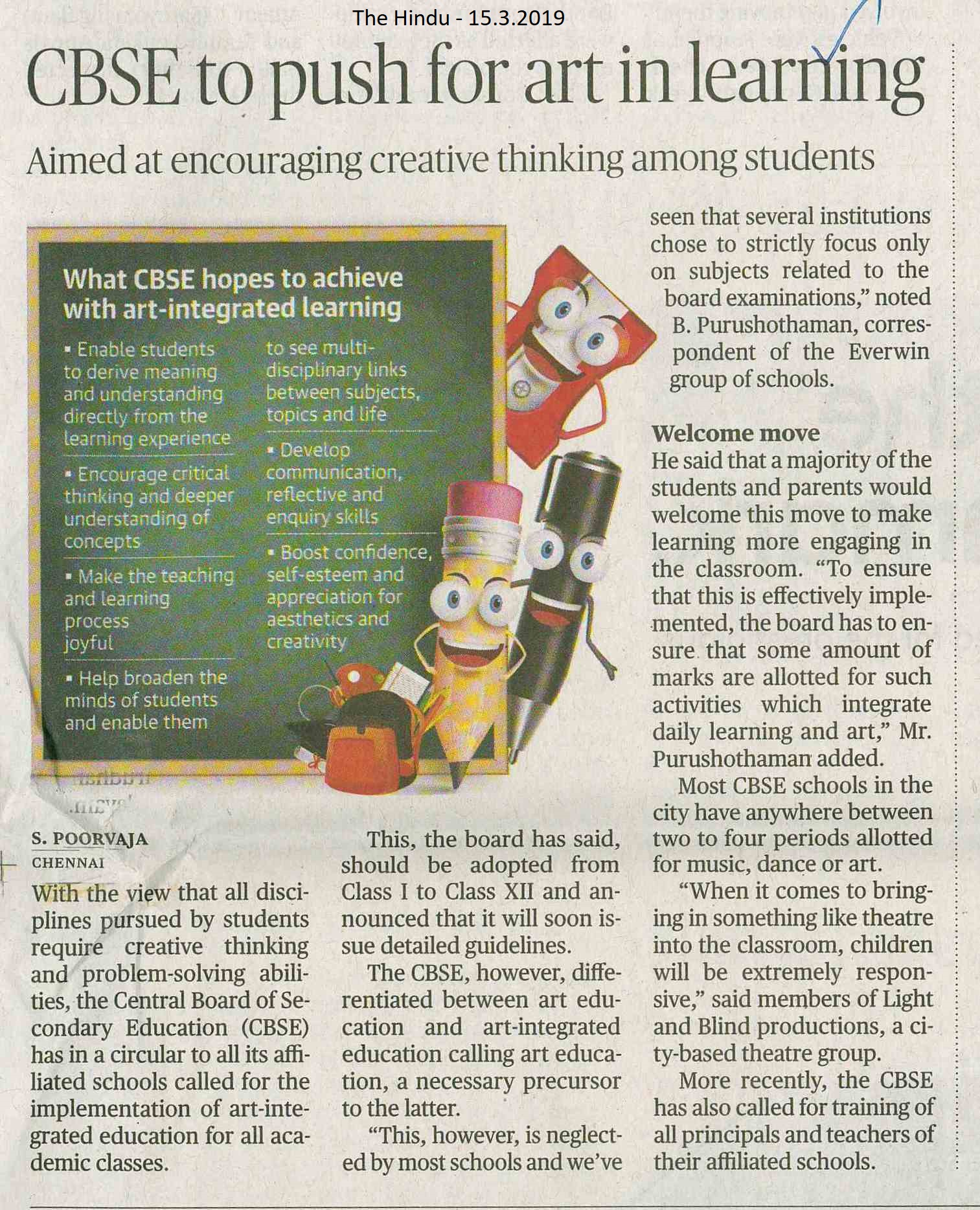 CBSE to push for art in Learning