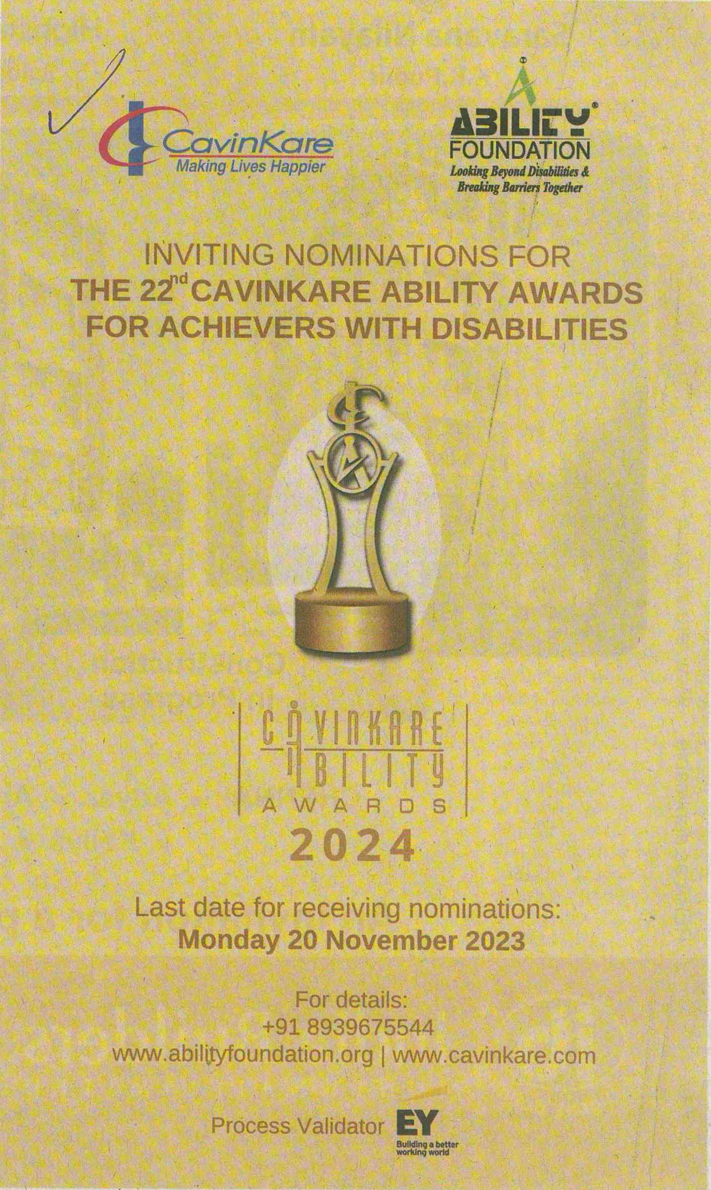 Nominations for Disability achiever award