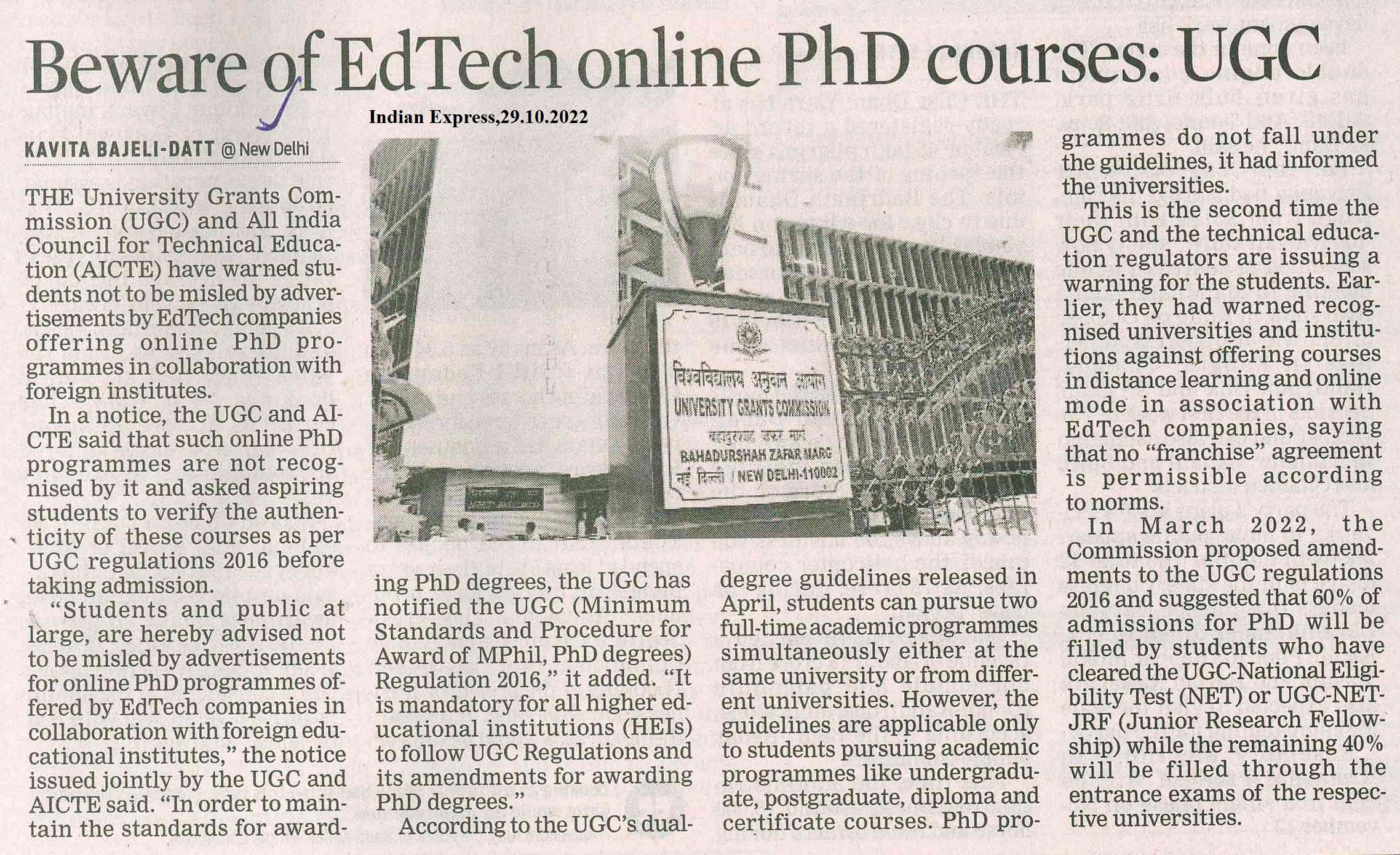 | dc.subject | Streamlining of Higher Education, Online Ph.D not eligible | en_US |