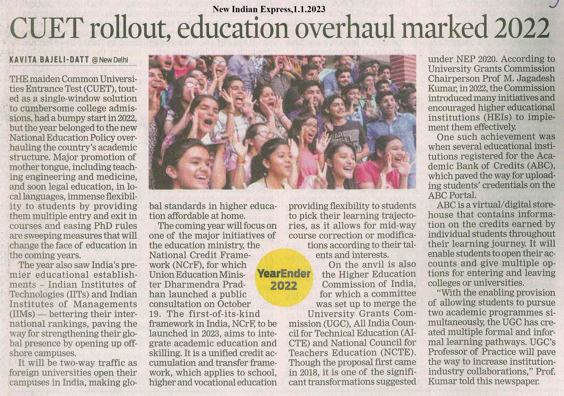 CUET, Self defense exercise, draft norms for foreign universities in india, NAAC benchmarks, one nation, one entrance exam, students to teach five non-literates, data and language skill