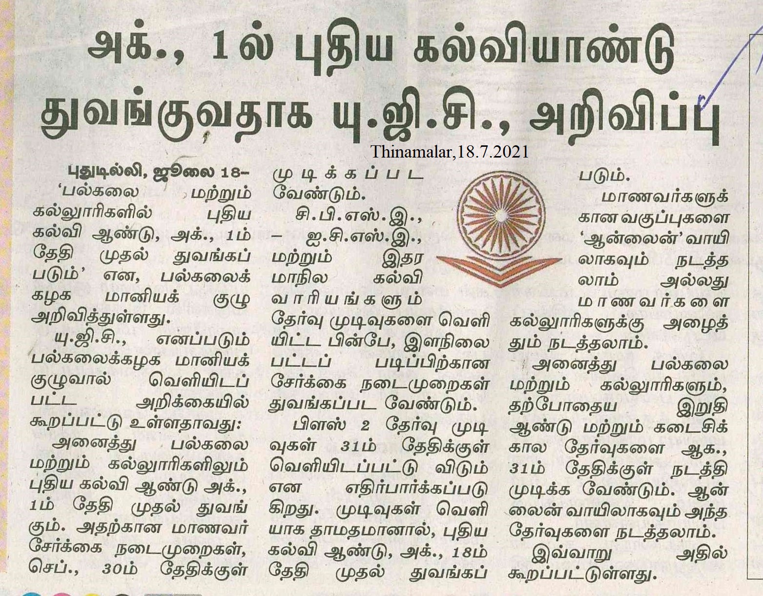 Academic year beginning from October 2021