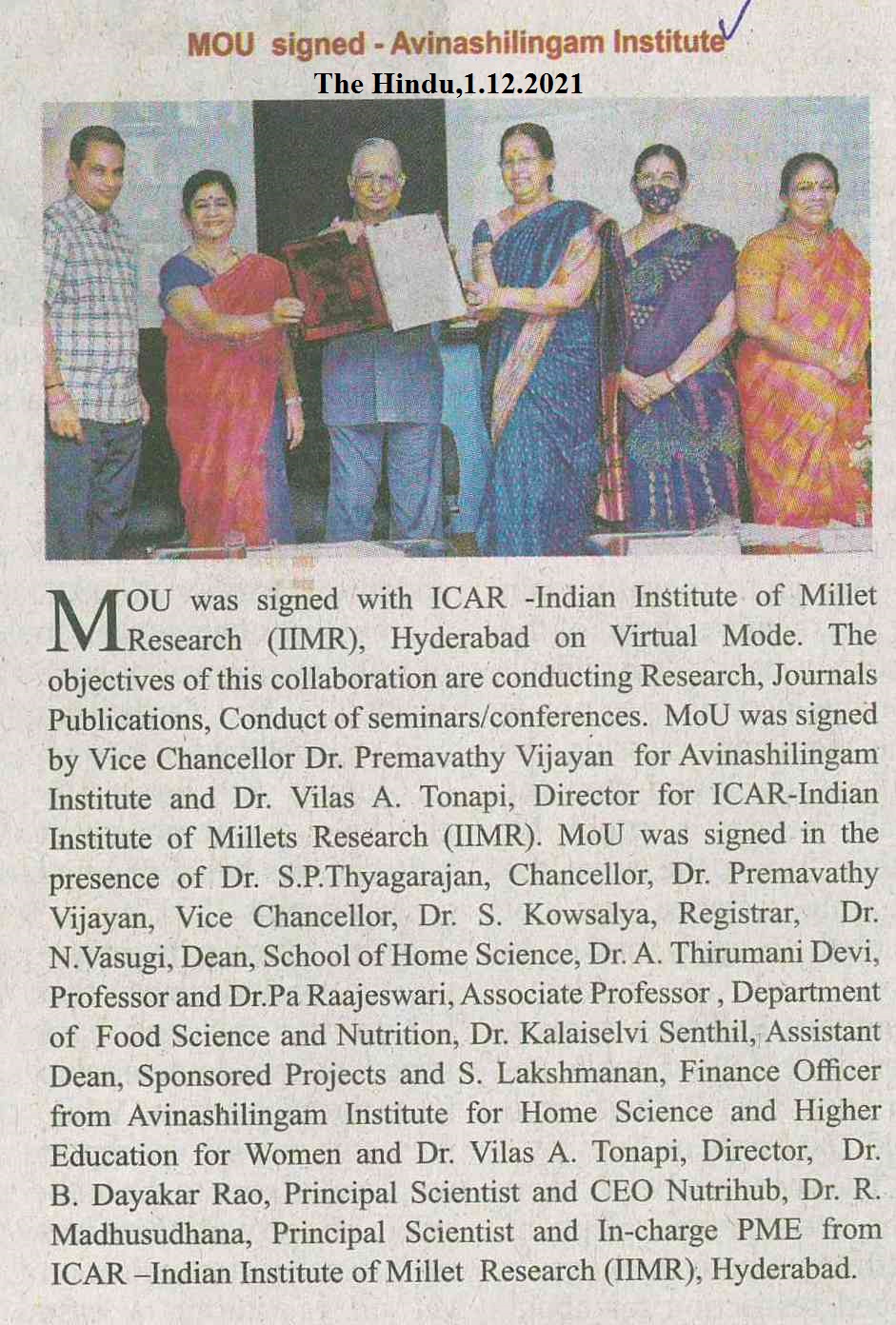 MOU, Avinashilingam