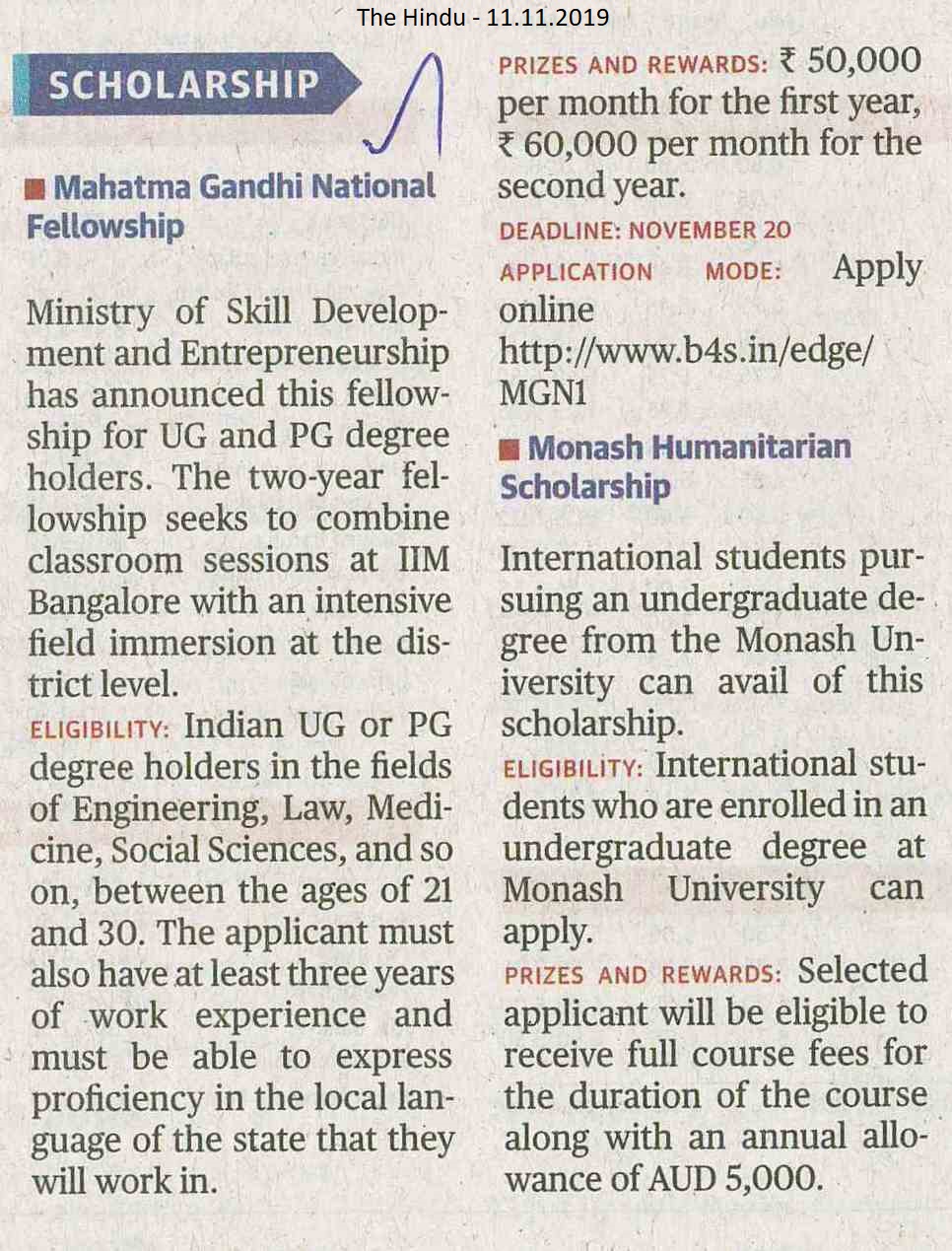 Government Scholarship 2019