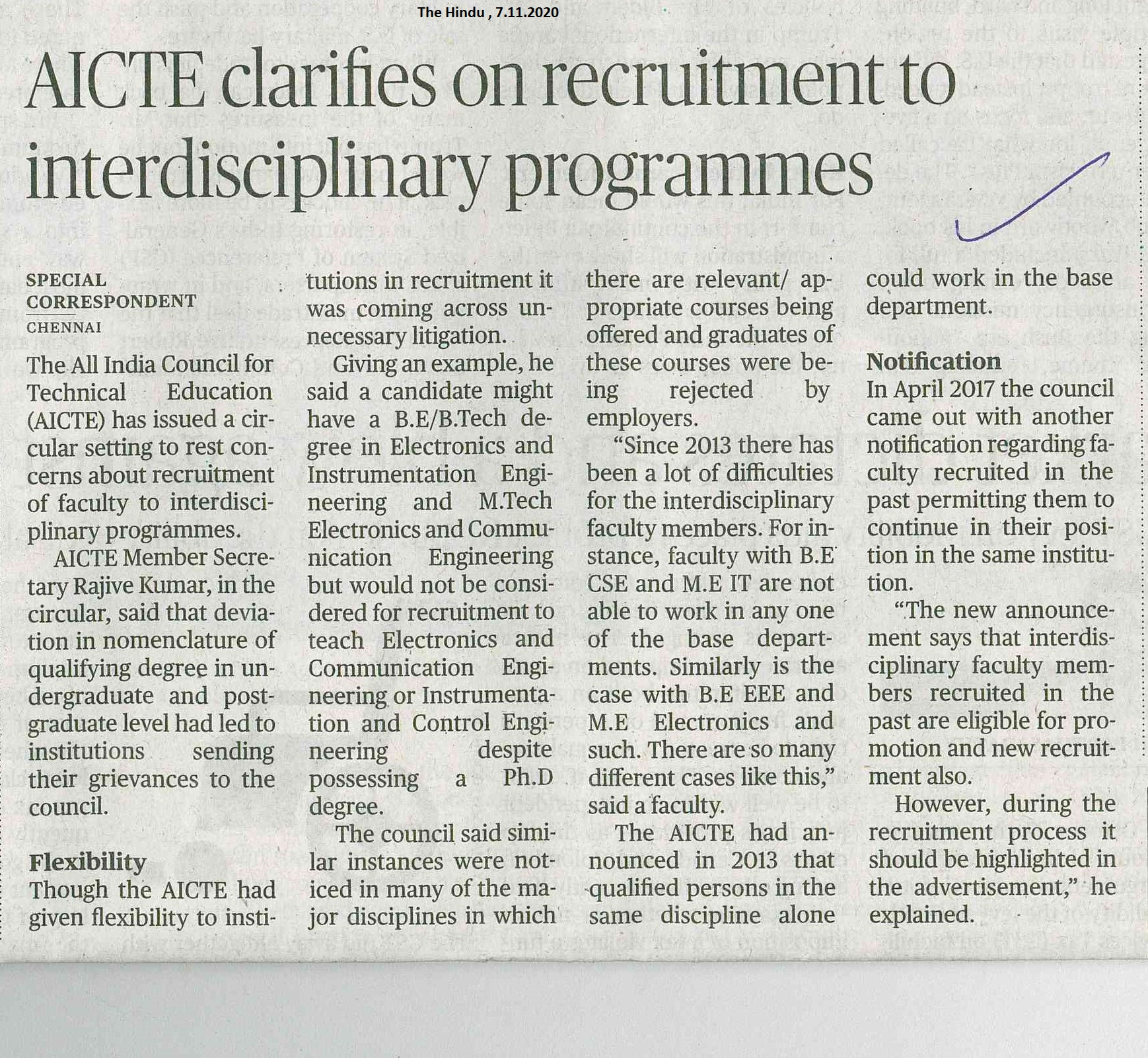AICTE clarifies on recruitment to interdisciplinary programmes