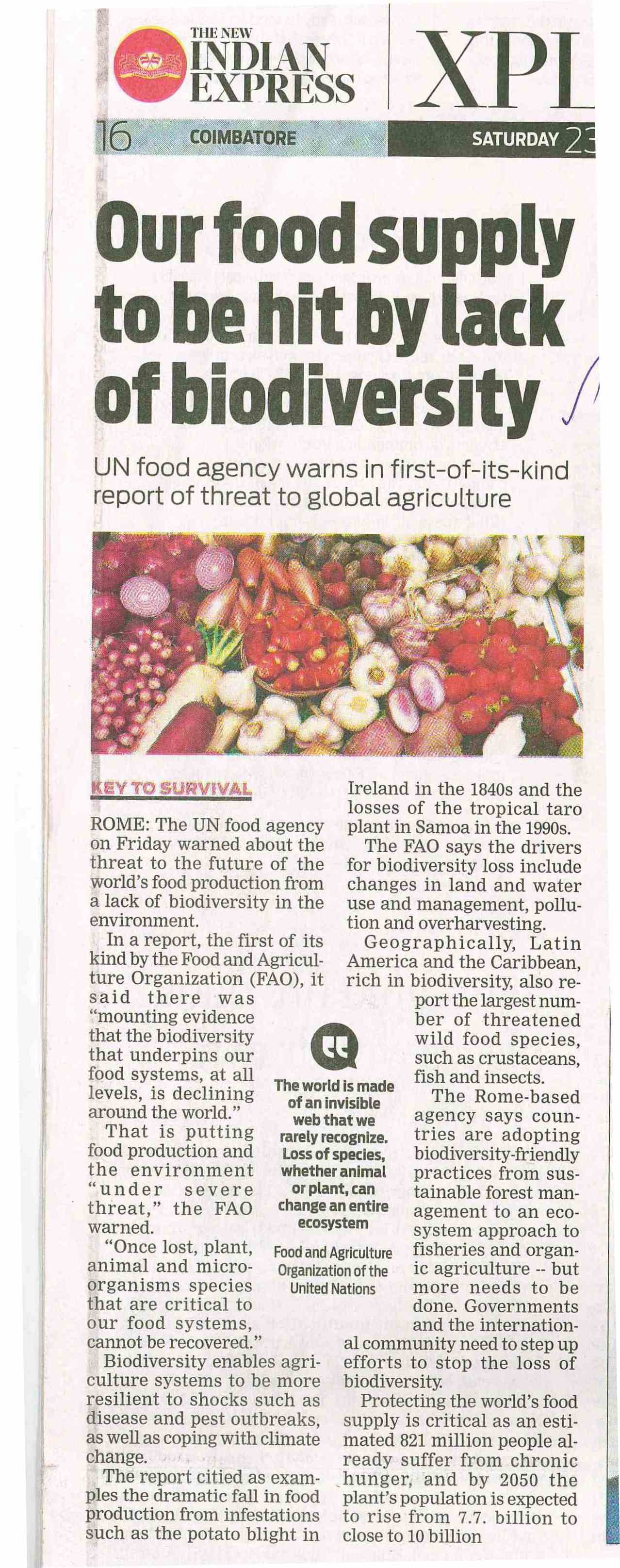 Food supply may hit by lack of biodiversity